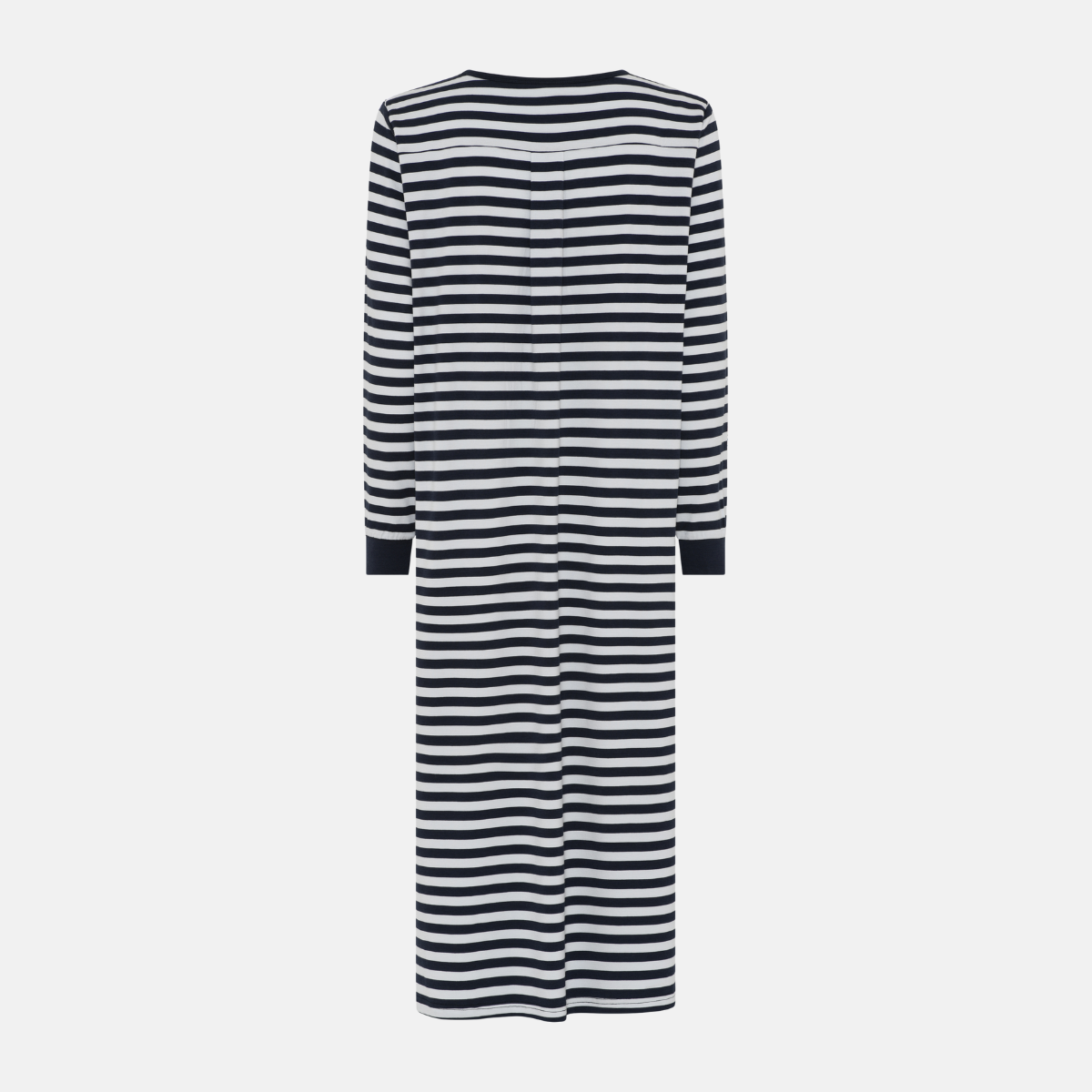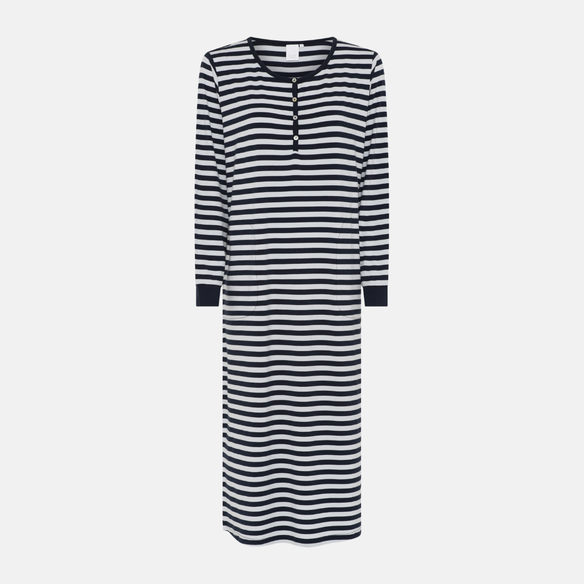 Denne flotte langærmede bambus natkjole med ekstra længde er dejlig kraftig i kvaliteten. Perfekt til kølige nætter og hyggelige søndage hjemme. Bambus er åndbart og temperaturregulerende, hvilket gør det perfekt til at sove i uden at få det alt for varmt eller koldt.