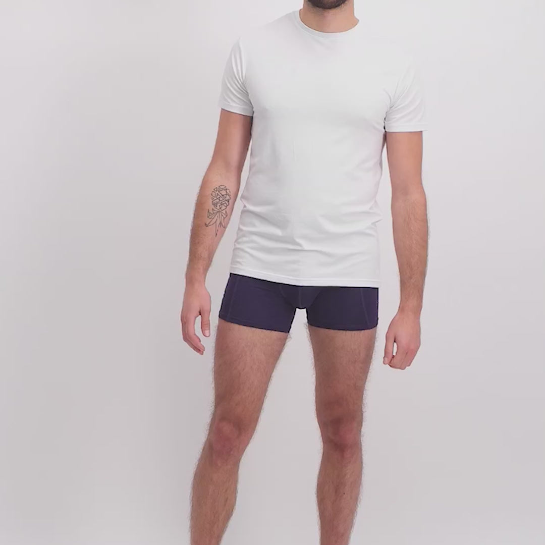 2 white bamboo round neck T-shirts from Bamboo Basics. Bamboo is a breathable and naturally absorbent material that keeps you fresh all day long.