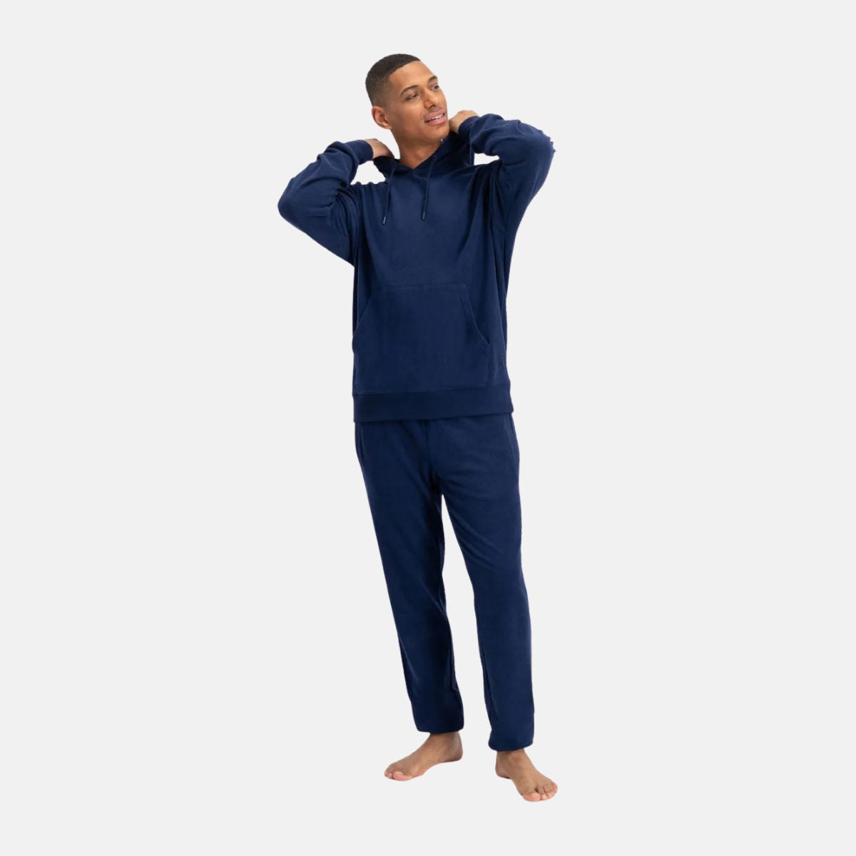 Dette navy joggingsæt fra Bamboo Basics består af en varm og blød hoodie samt navy sweatpants til mænd. Du får optimal komfort, varme og stil – perfekt til afslapning, fritid og hyggedage med tidløs pasform og høj kvalitet i finishen.